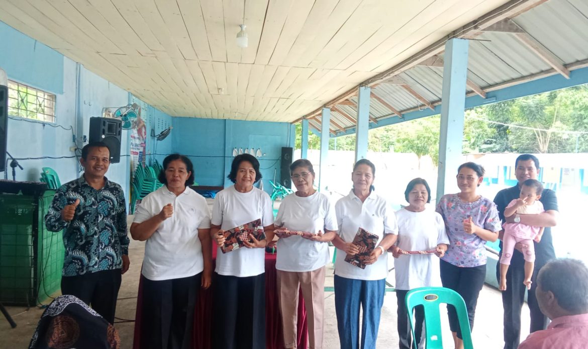 Pemberian hadiah bagi lansia yang keluar sebagai pemenang dalam berbagai kegiatan ibadah padang Lansia GKPI Pandan, Senin 10 November 2025 di Kolam Renang Fren.
