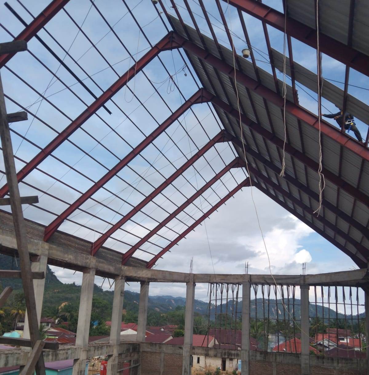 Seiring dengan kondisi alam yang sudah mulai pulih, proses pembangunan gereja terus berlanjut. Dan Puji Tuhan saat ini sudah memasuki tahap pengatapan setelah kerangka baja atap selesai dipasang. Dengan menggunakan seng jenis Alderon diperikiran dalam minggu ini selesai proses pengatapan.
