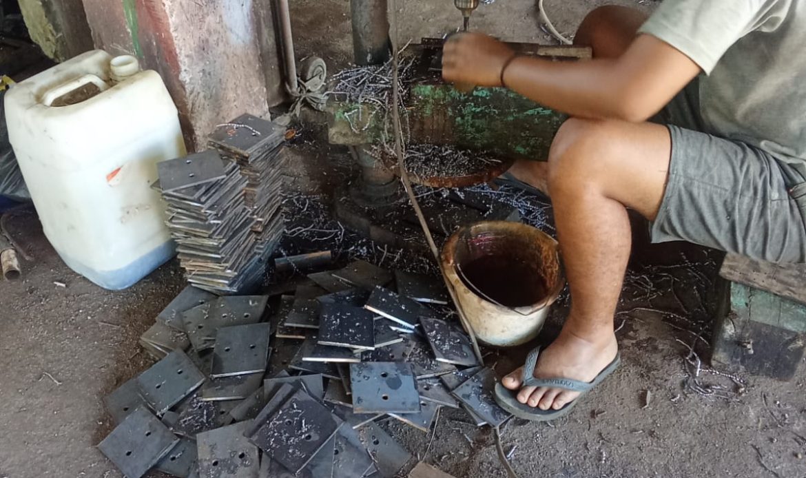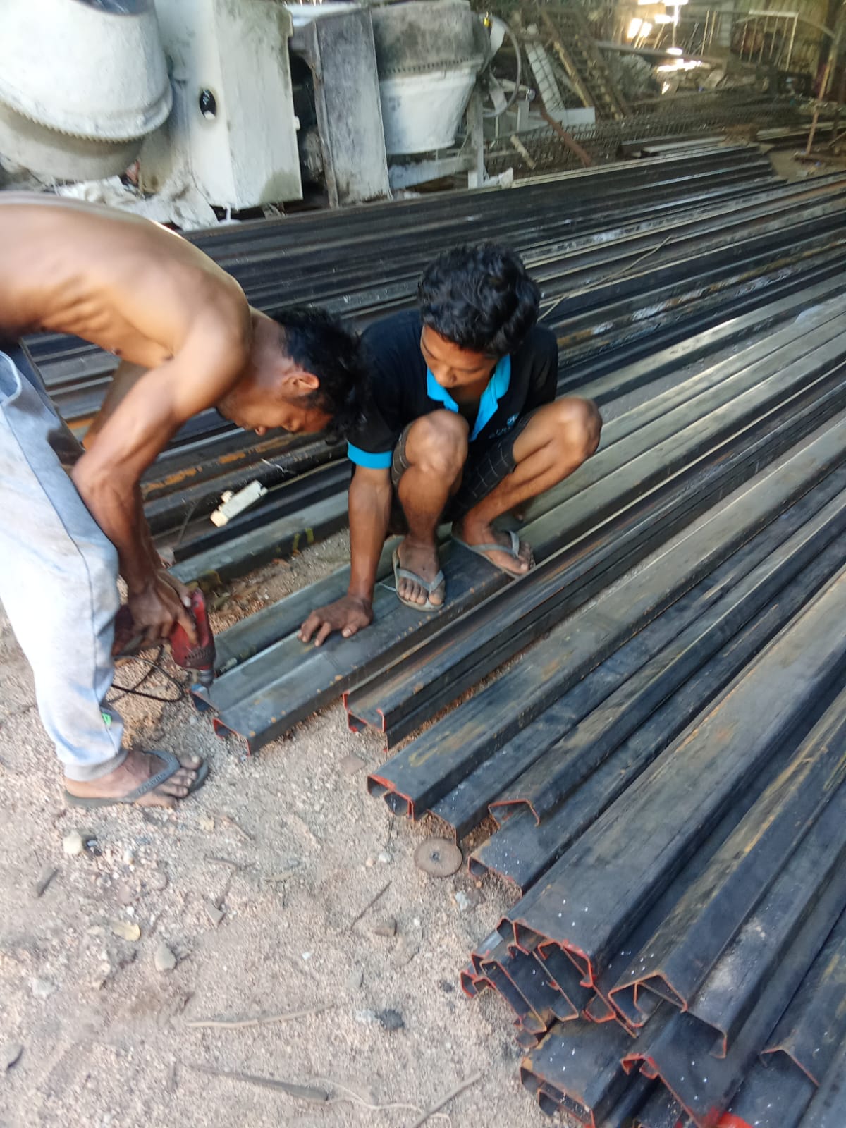 Pengerjaan reng basa ini sudah dimulai dari beberapa waktu lalu oleh para tukang. Mulai dari memotong baja berat, membuat lobang sesuai ukuran baut yang akan dipakai nanti.